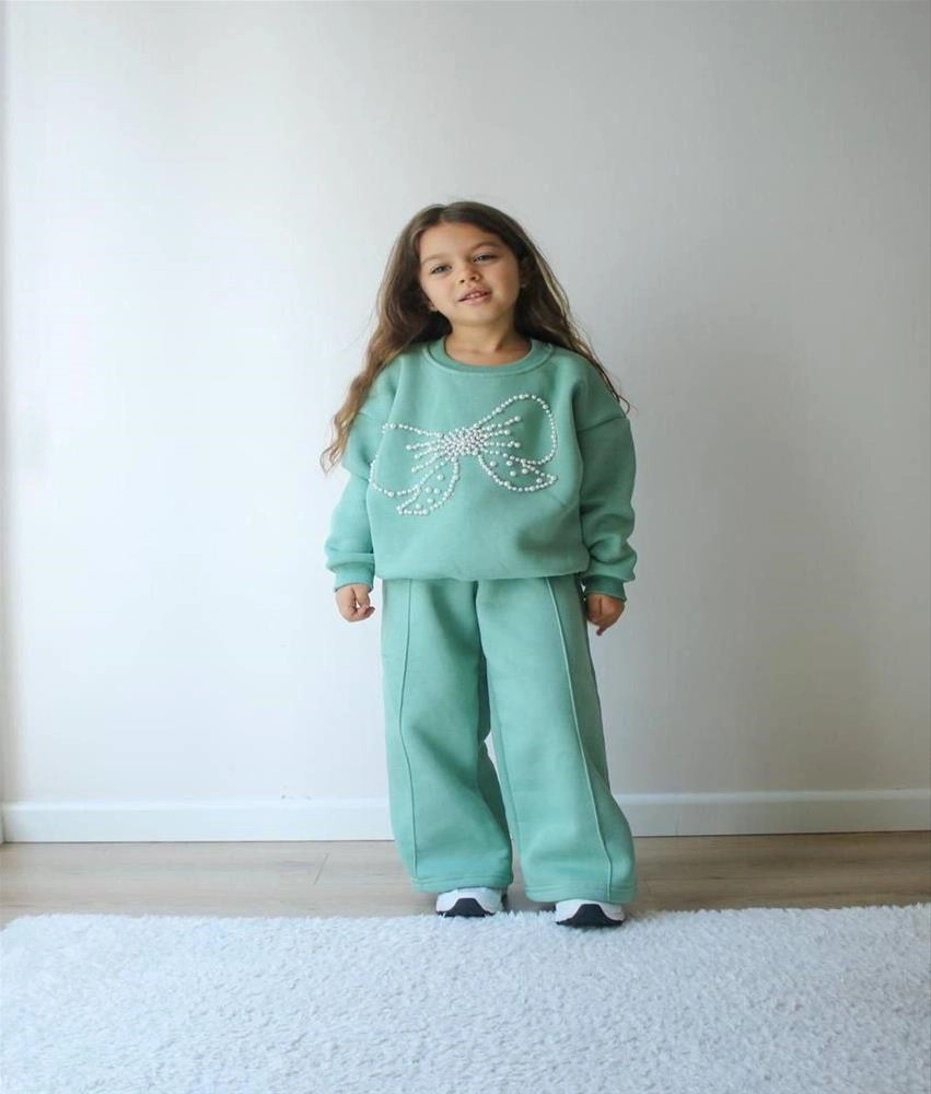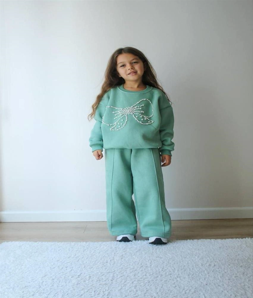 ست کرک دار سبز ادامسی طرح مروارید پاپیونی کد 5030